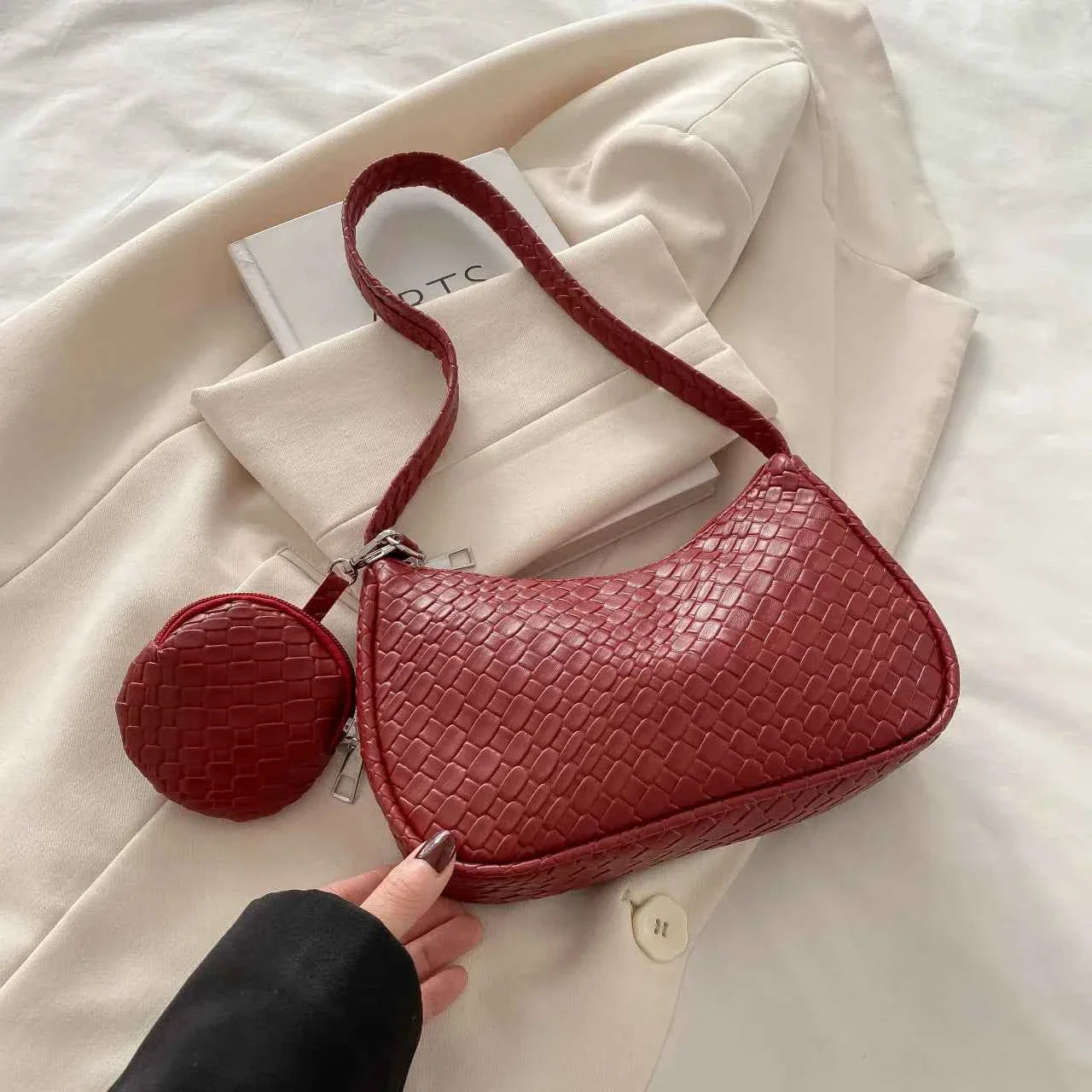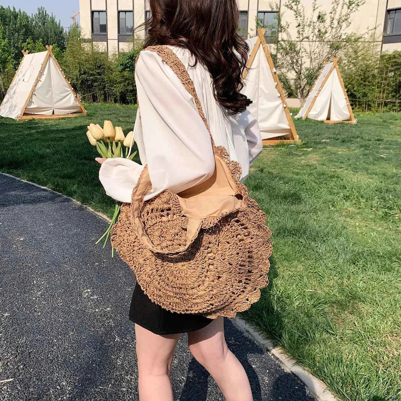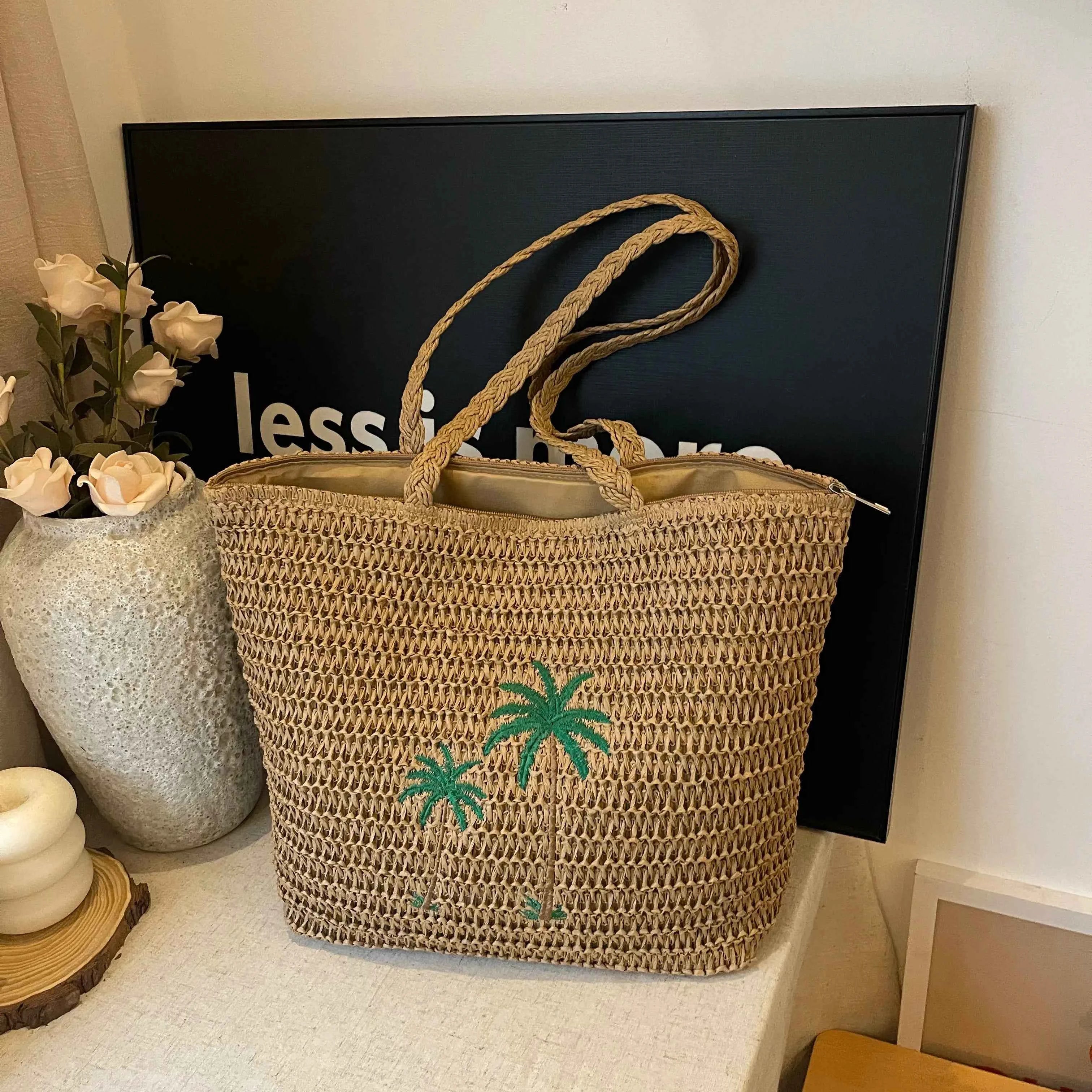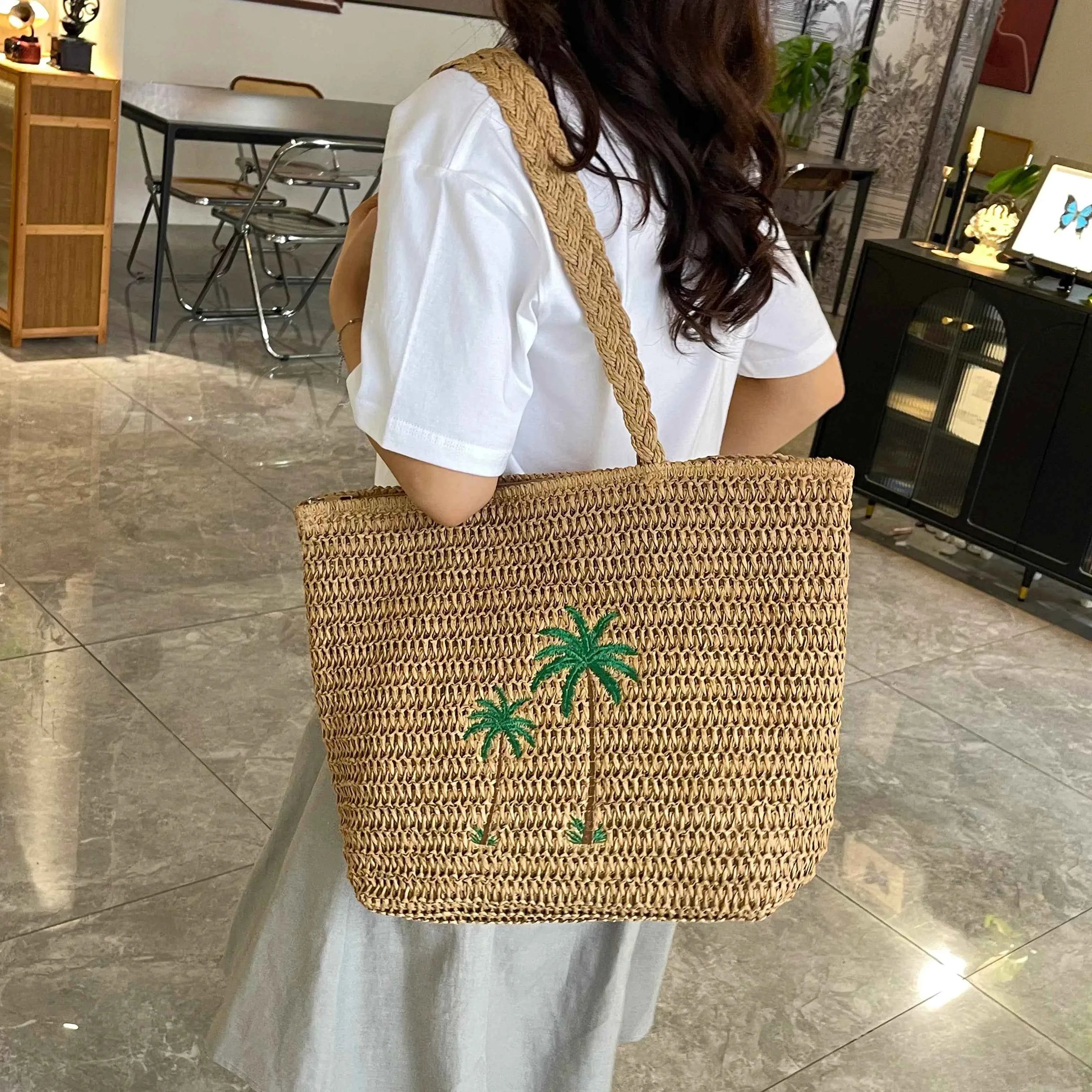 Woven Straw Summer Shoulder Bag with Leather Handles -
