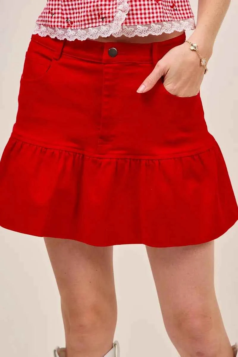 SO ME Ruffled Hem Game Day Mini Skirt -