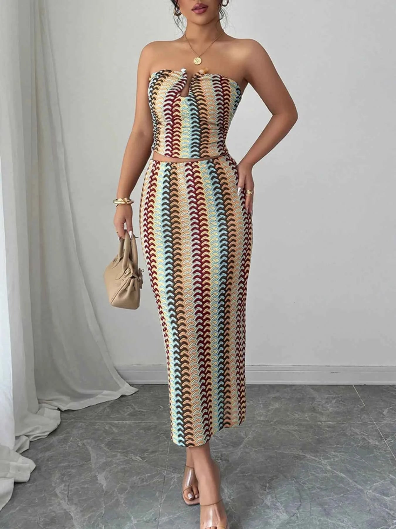 Sweetheart Neck Long Sleeve Top and Skirt Set Sweetheart Neck Long Sleeve Top and Skirt Set