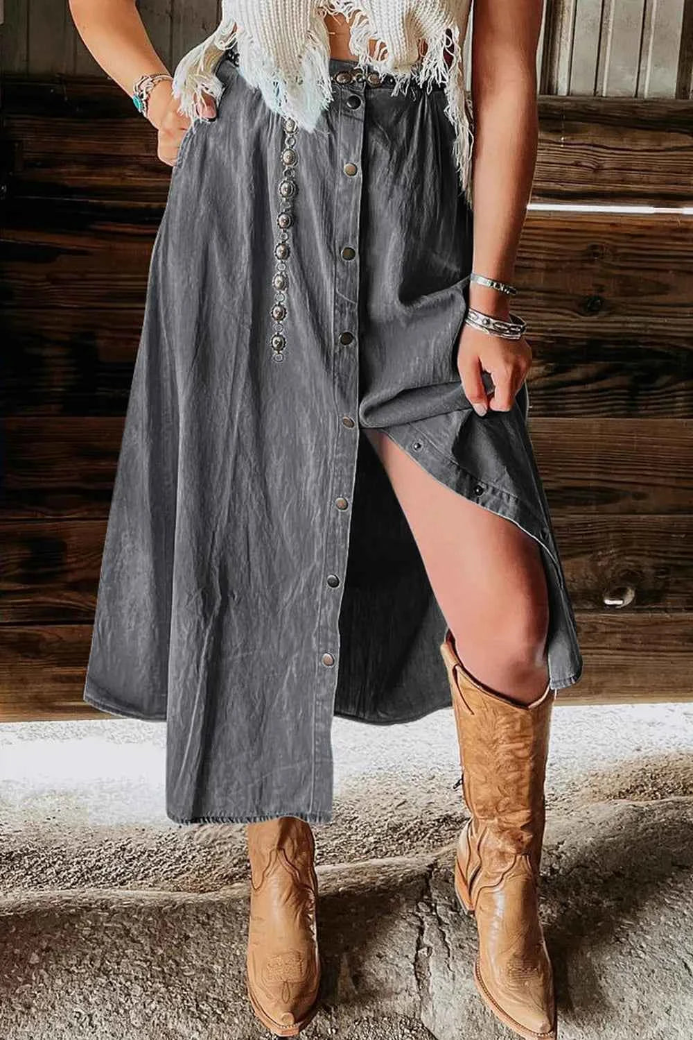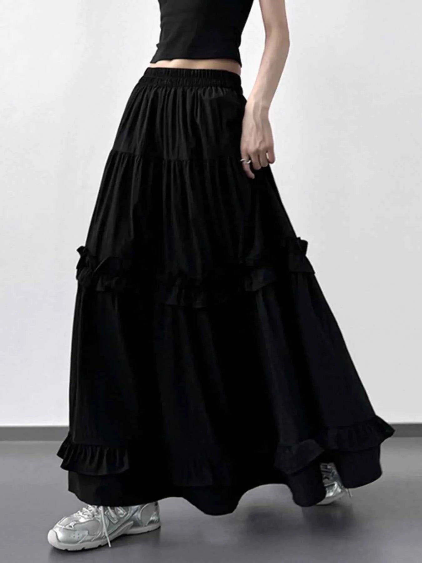 Asymmetrical Hem Midi Skirt with Drawstring Waist Asymmetrical Hem Midi Skirt with Drawstring Waist