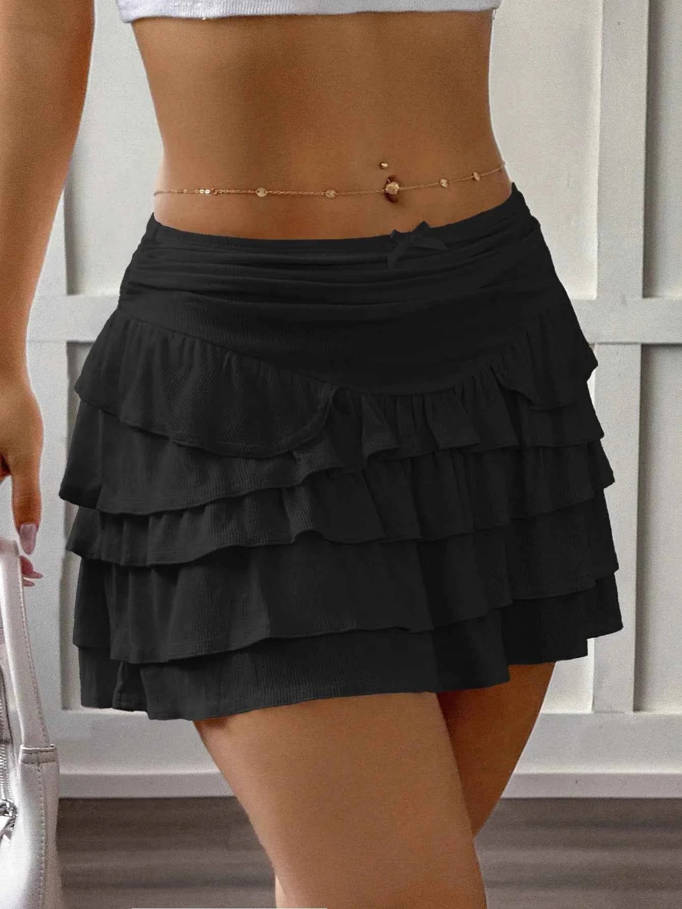Layered Tulle Mini Skirt with Contrast Waistband Layered Tulle Mini Skirt with Contrast Waistband