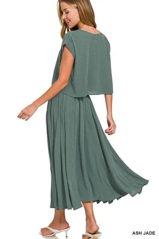 Zenana Woven Crinkle Gauze Crop Tee and Skirt Set Zenana Woven Crinkle Gauze Crop Tee and Skirt Set