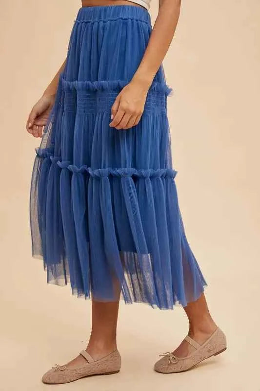 ADORA Elastic Waistband Tiered Midi Skirt ADORA Elastic Waistband Tiered Midi Skirt