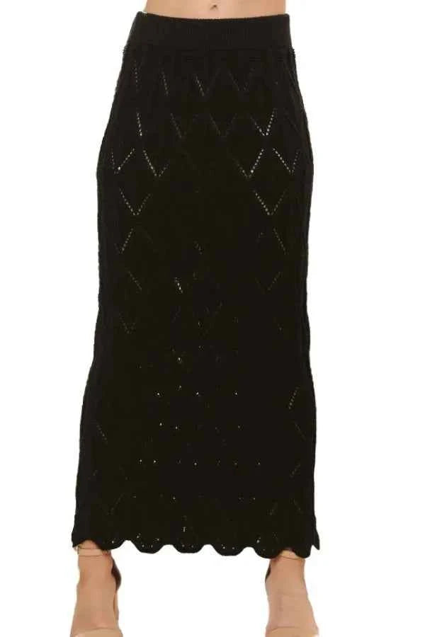 MABLE Pointelle Short Sleeve Crop Top and Slit Skirt Sweater Set