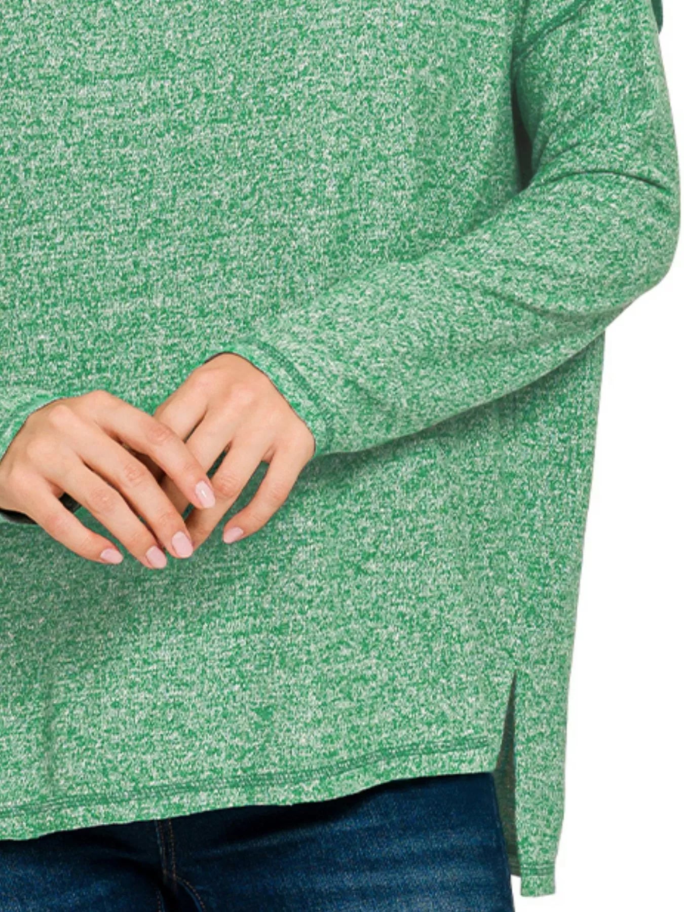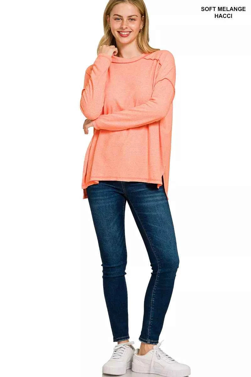 Zenana Full Size Melange Hacci Exposed Seam Hi-low Tee Plus Size -