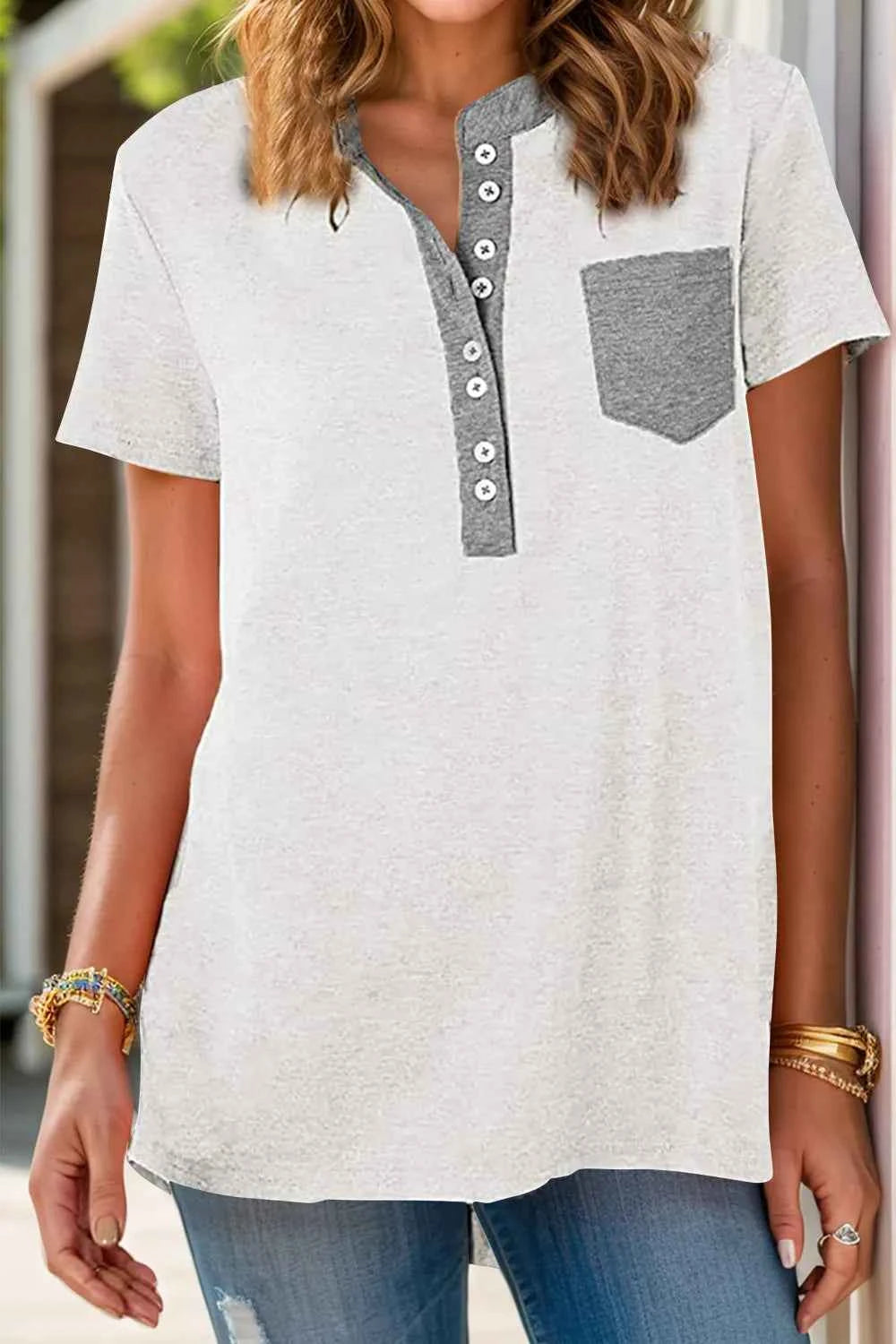 Full Size Half Button Short Sleeve T-Shirt Full Size Half Button Short Sleeve T-Shirt