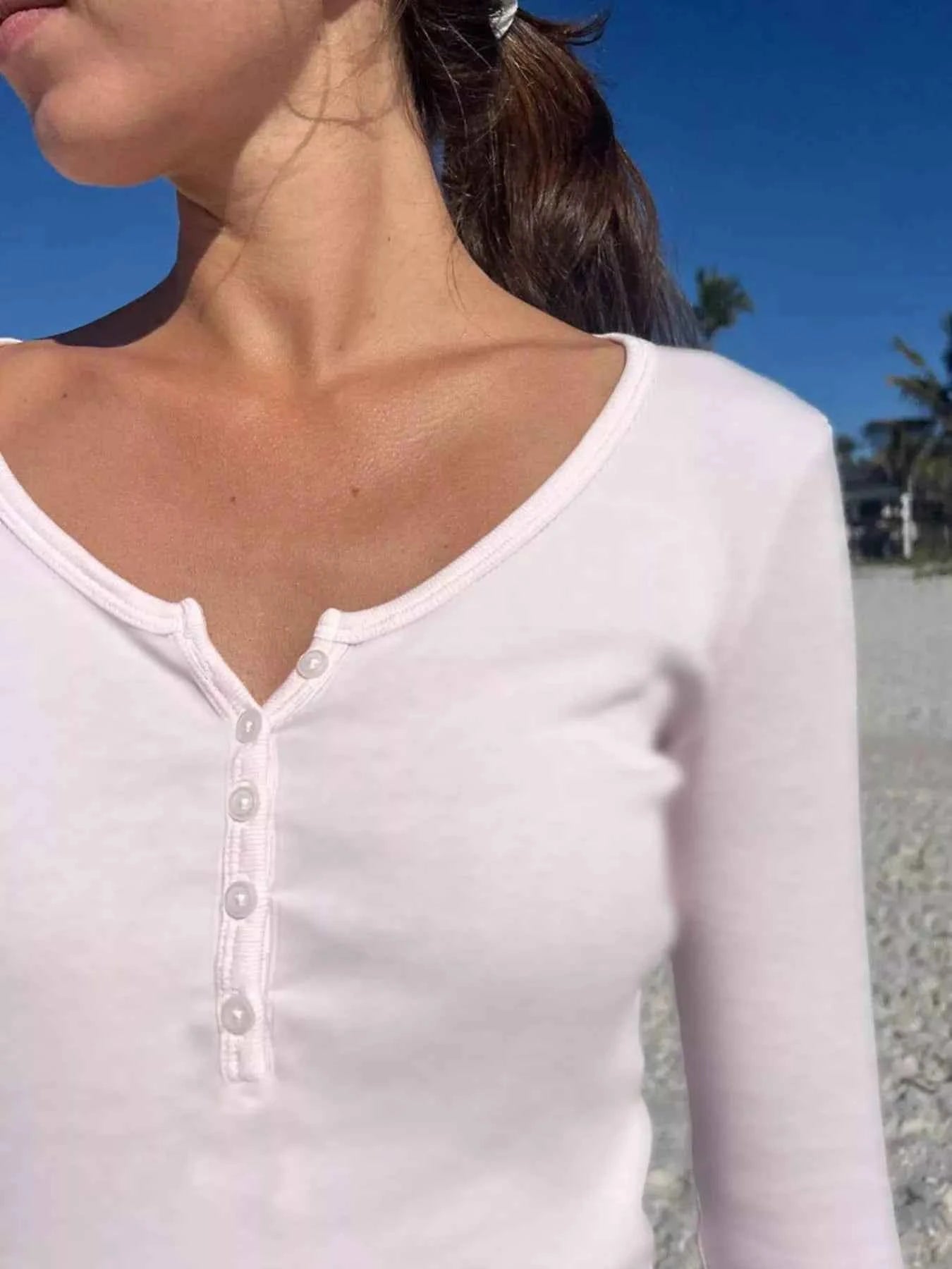 Ribbed Knit Decor Button T-Shirt -