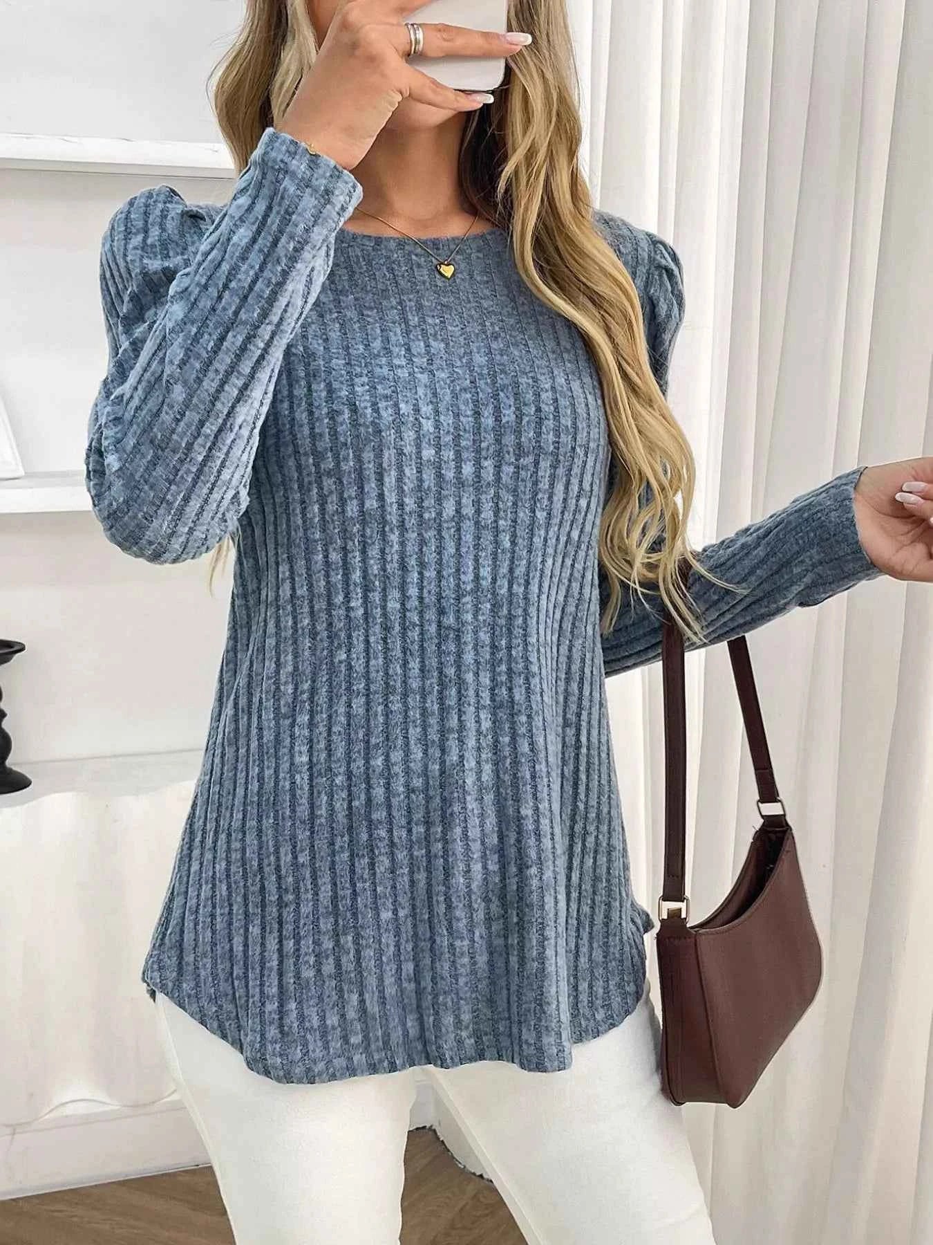 Round Neck Puff Sleeve T-Shirt -