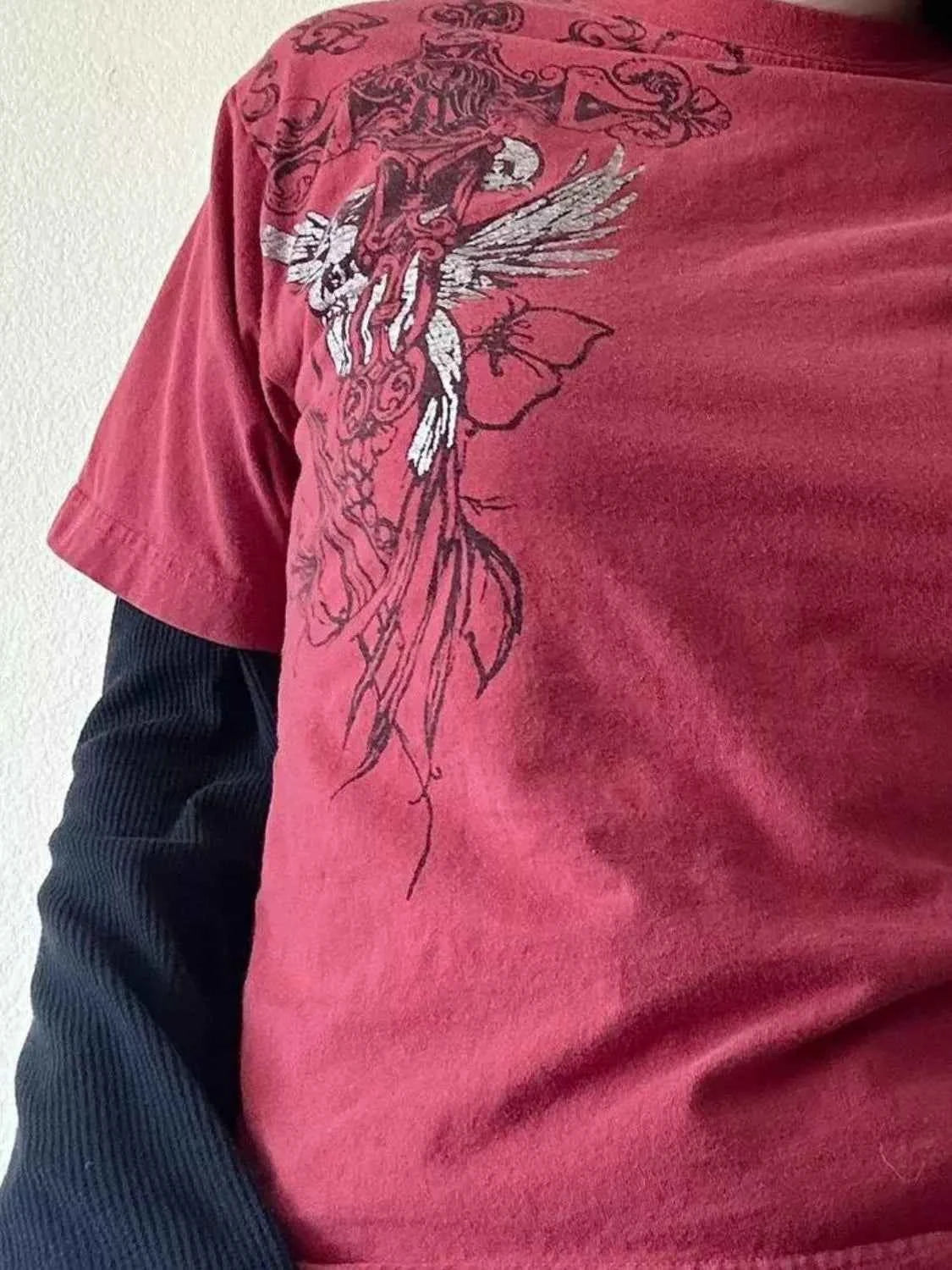 Graphic Round Neck Dropped Shoulder T-Shirt Graphic Round Neck Dropped Shoulder T-Shirt