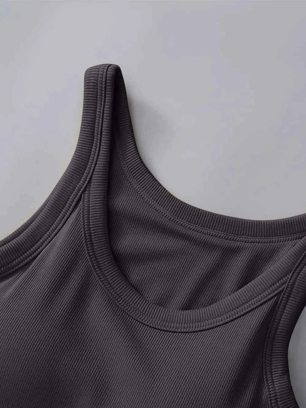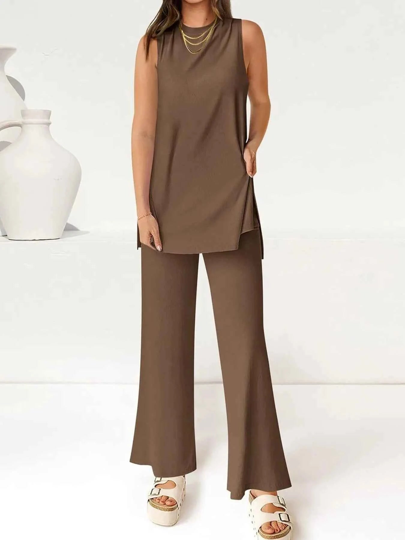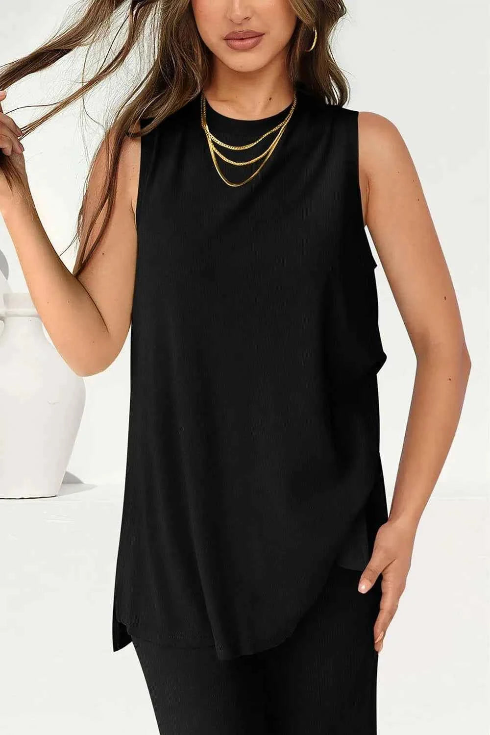 Side Slit Round Neck Tank and Ribbed Shorts Sweater Set Side Slit Round Neck Tank and Ribbed Shorts Sweater Set