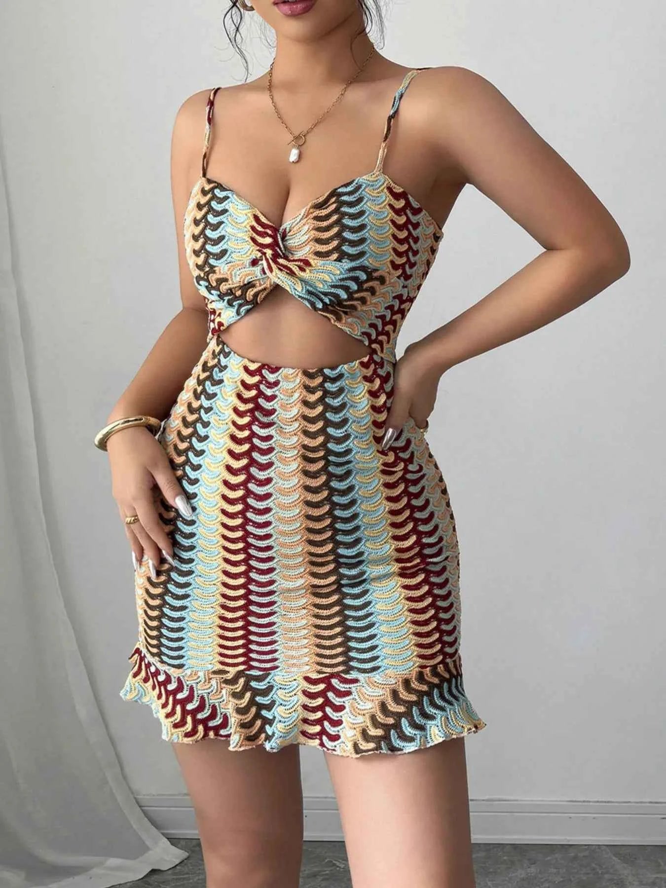 Cutout Ruffled Hem Cami Dress -
