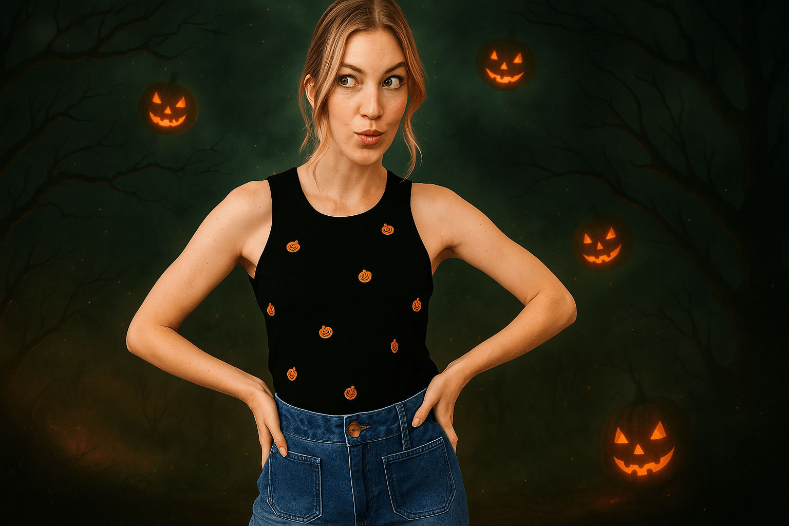 Beige Halloween Cute Pumpkin Pattern Sweater