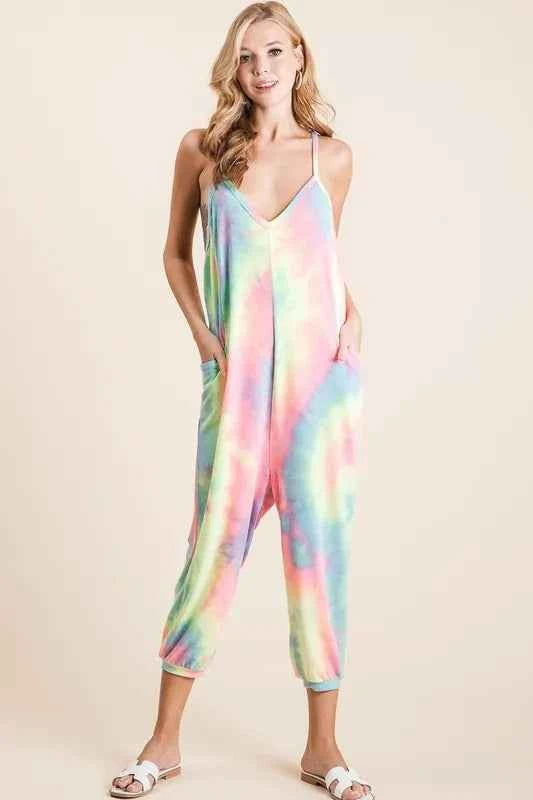 BiBi Tie Dye French Terry Mid-Length Casual Jumpsuit
