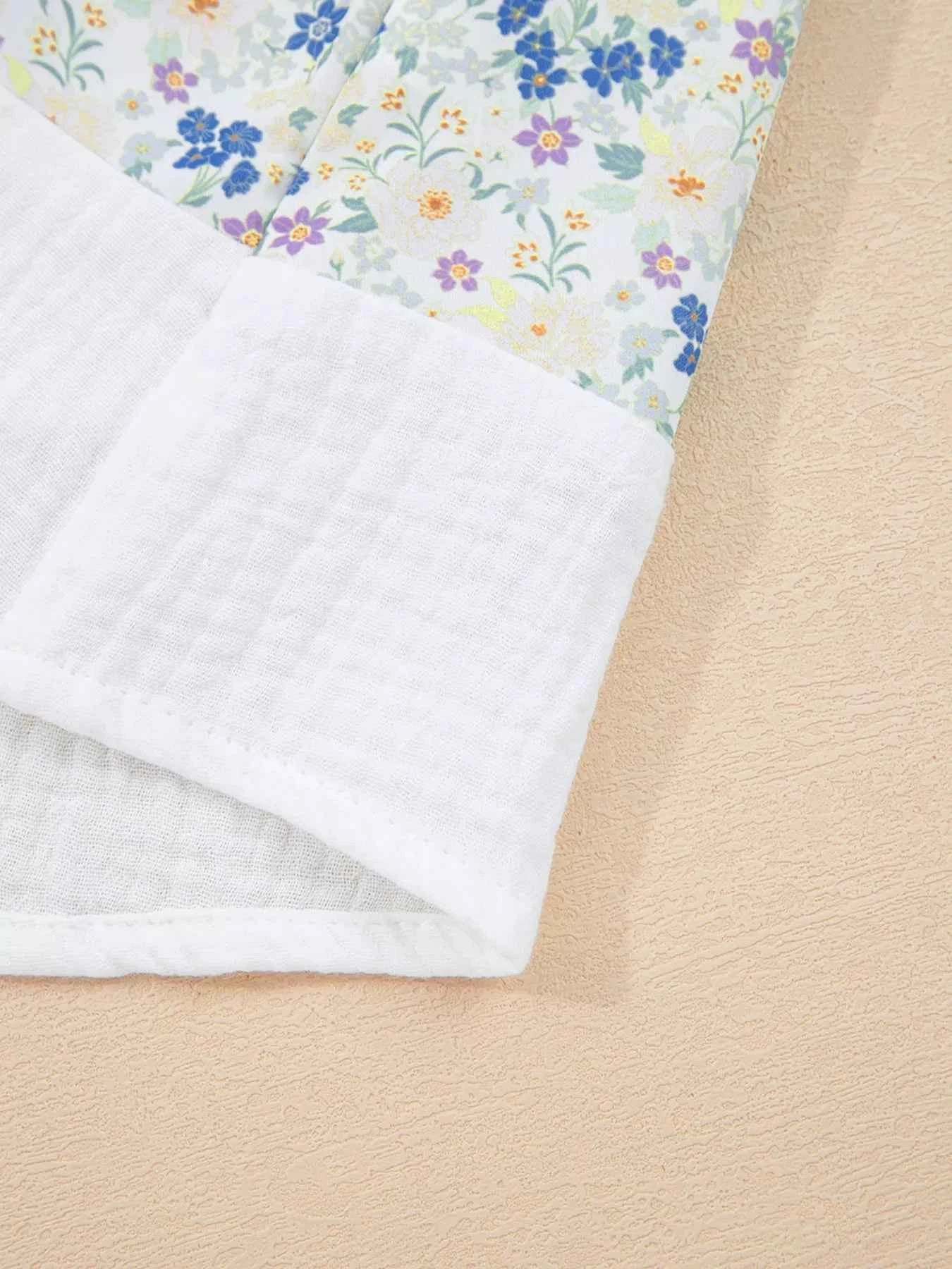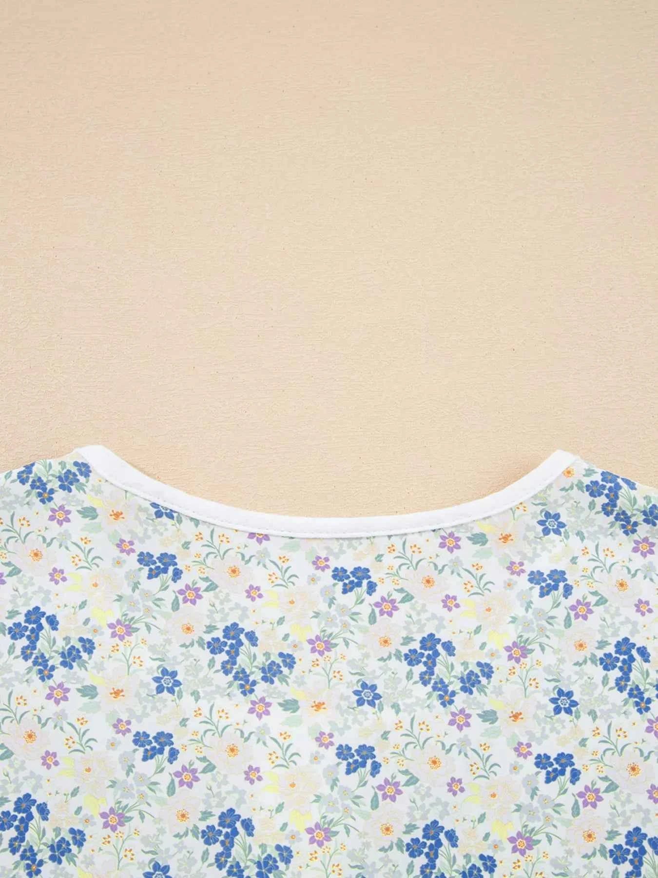 Floral Print Henley Button 3/4 Sleeve Blouse
