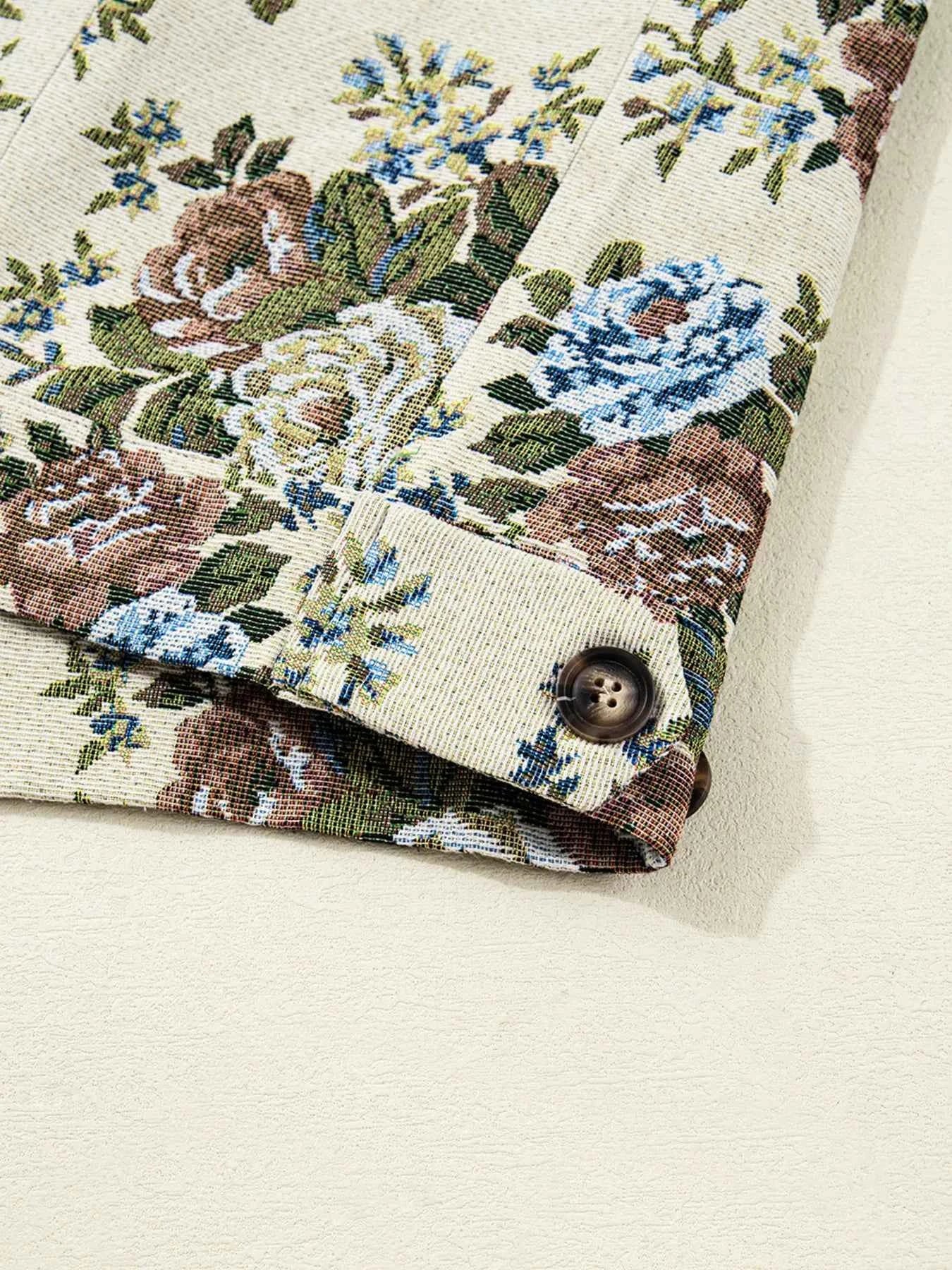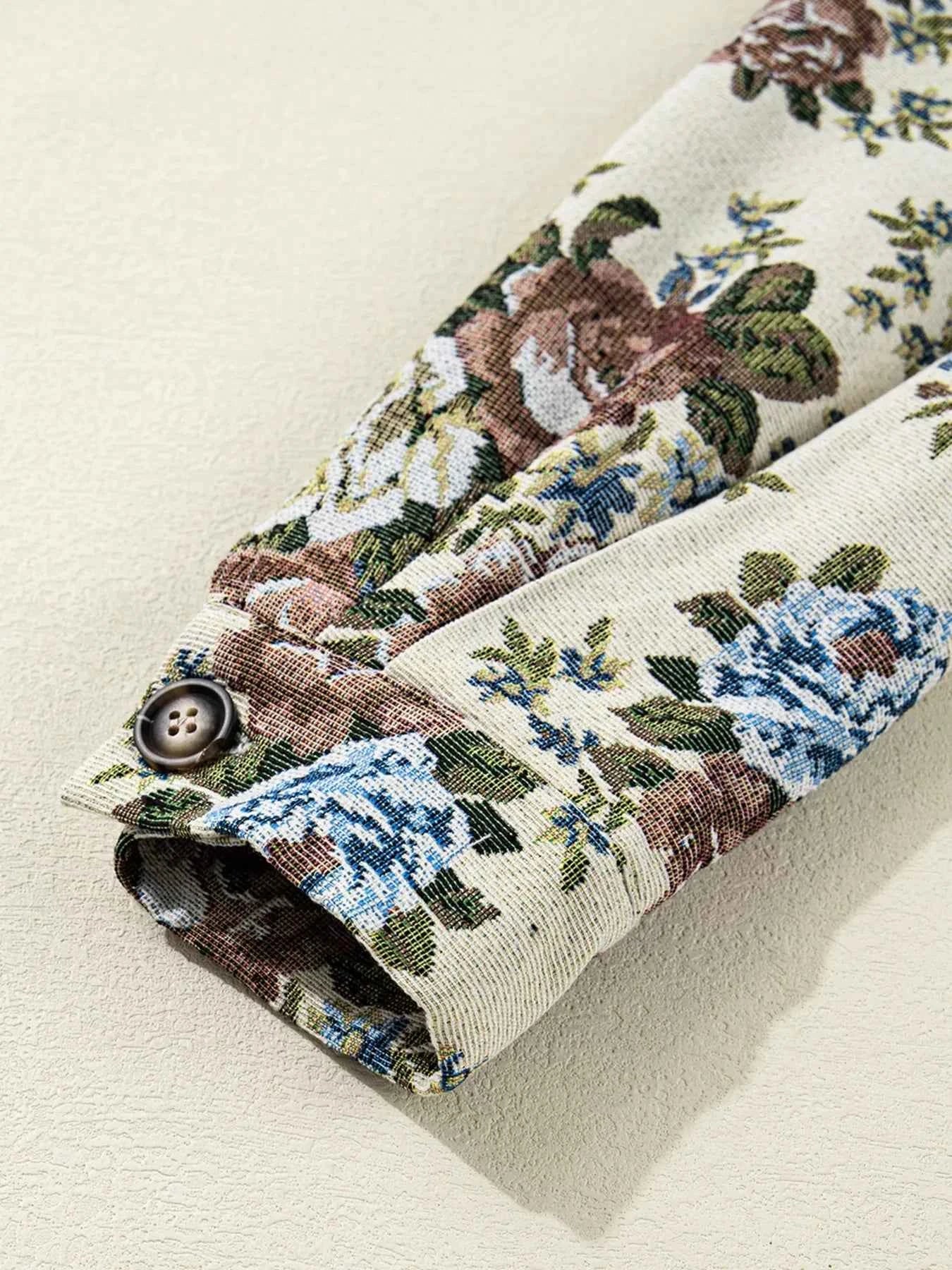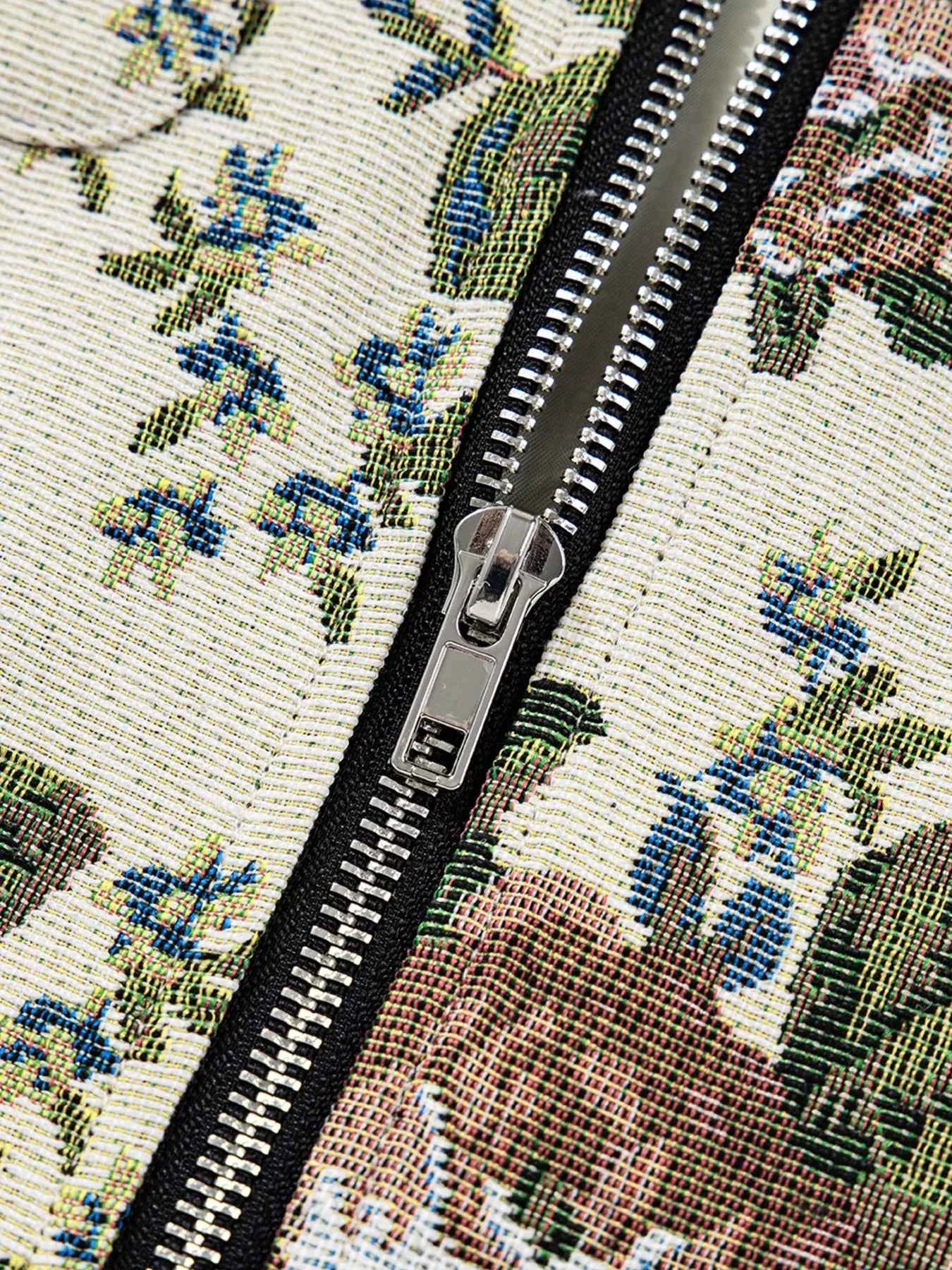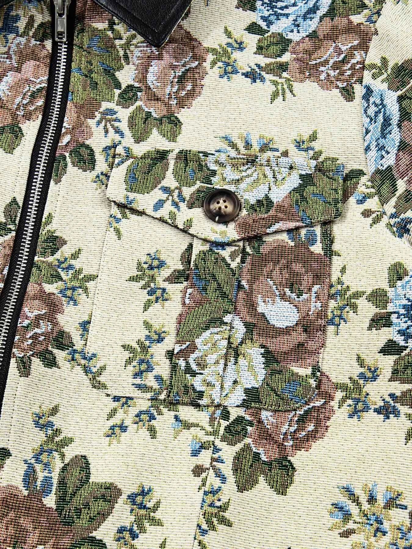 Floral Print Zip Up Contrast Collared Jacket