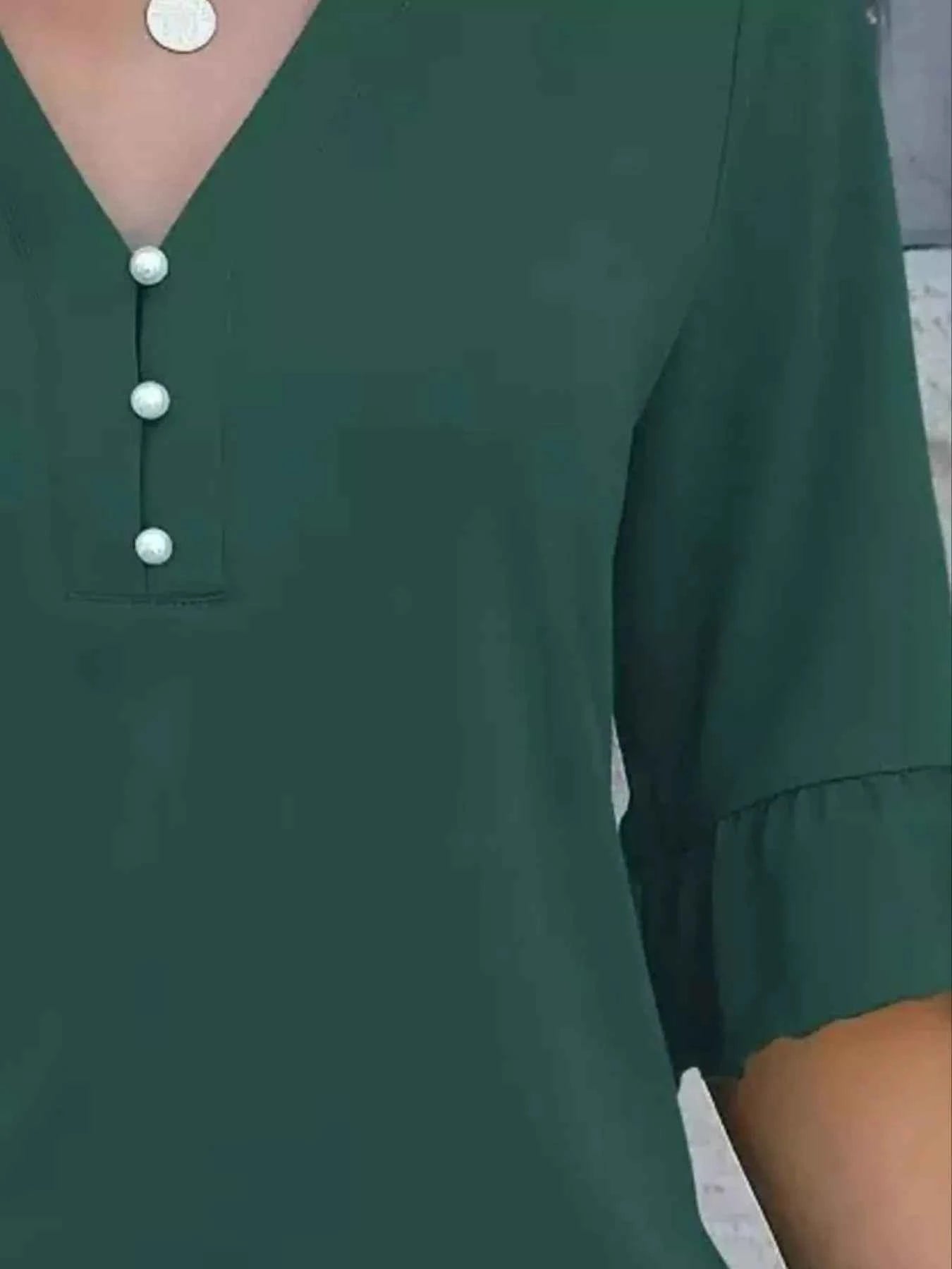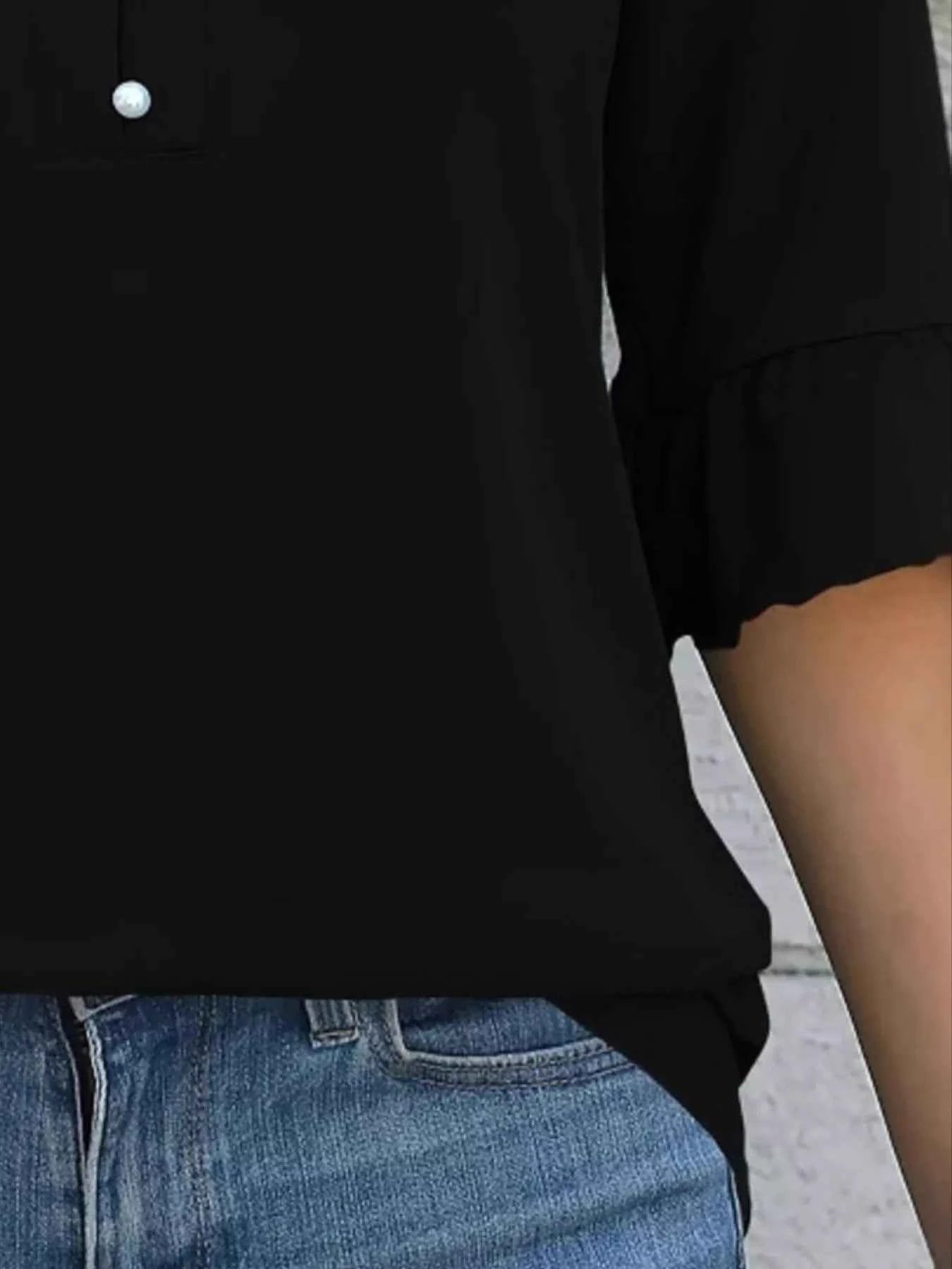 Full Size Notched Flounce Sleeve Blouse Plus Size