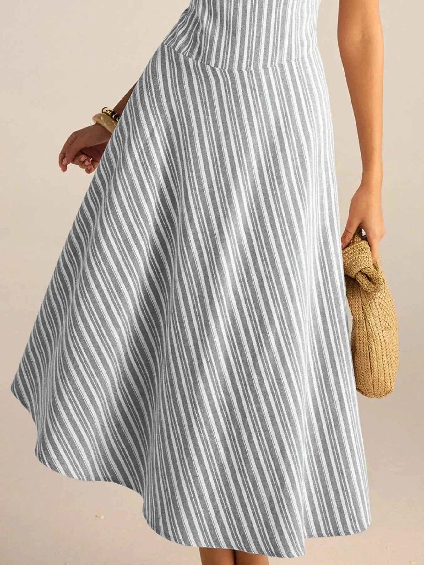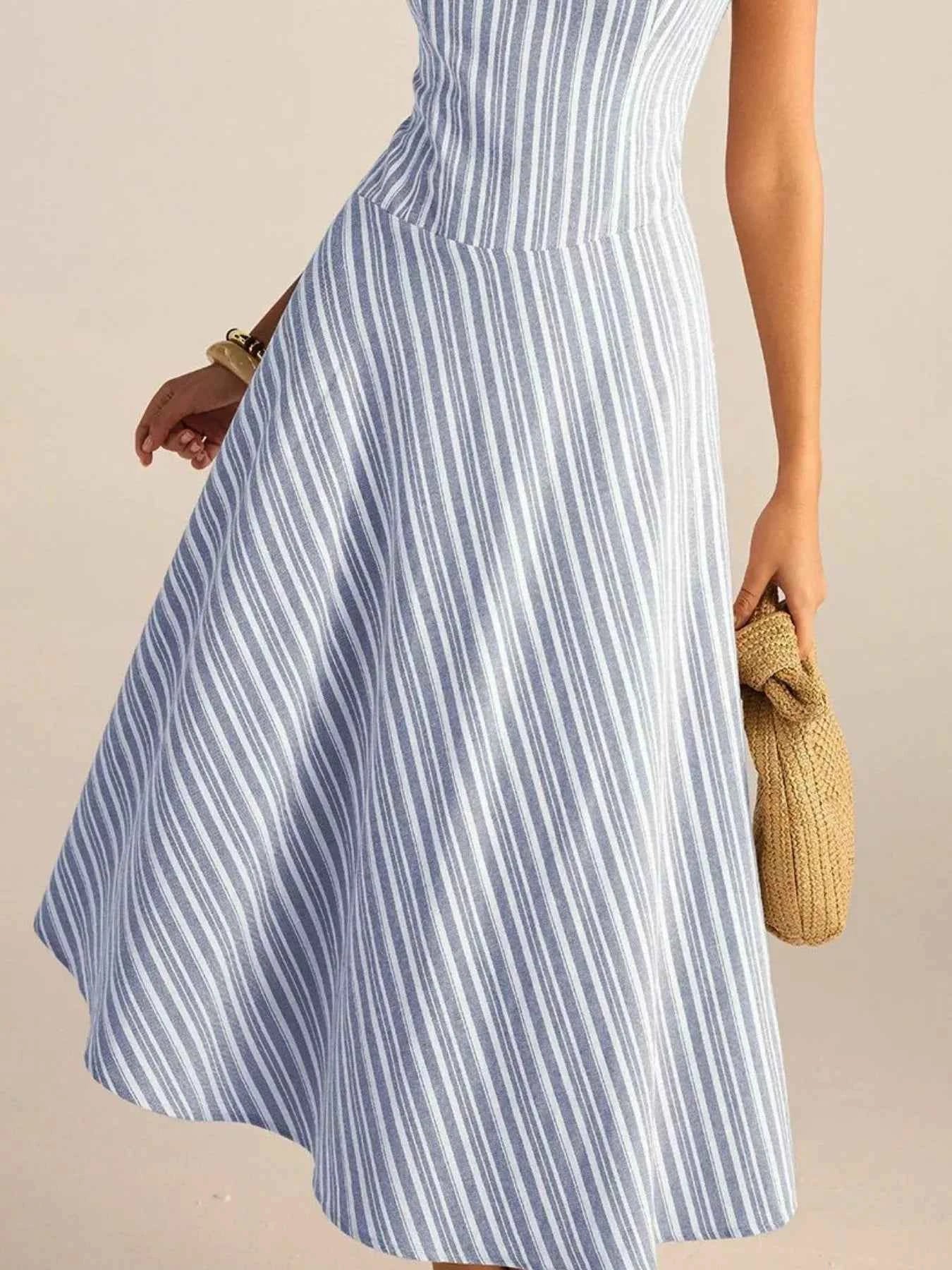 Full Size Striped Sleeveless Midi Dress Plus Size
