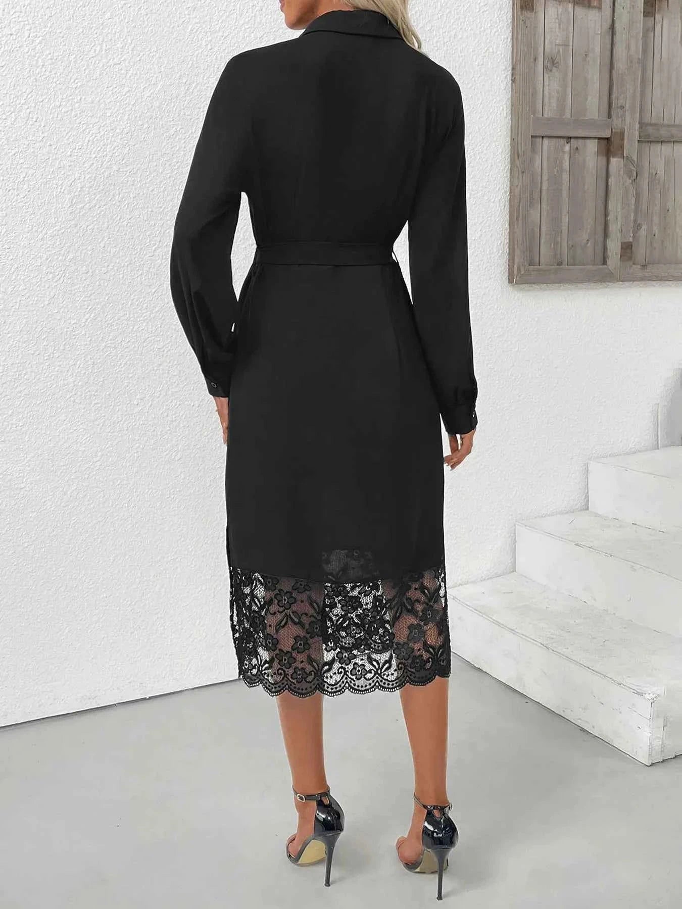 - Features:Lace,Buttoned,Belted,Lace Detail,Slit