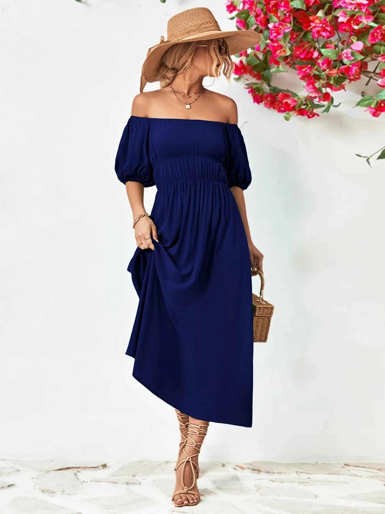 Off-Shoulder Puff Sleeve Smocked Maxi Dress