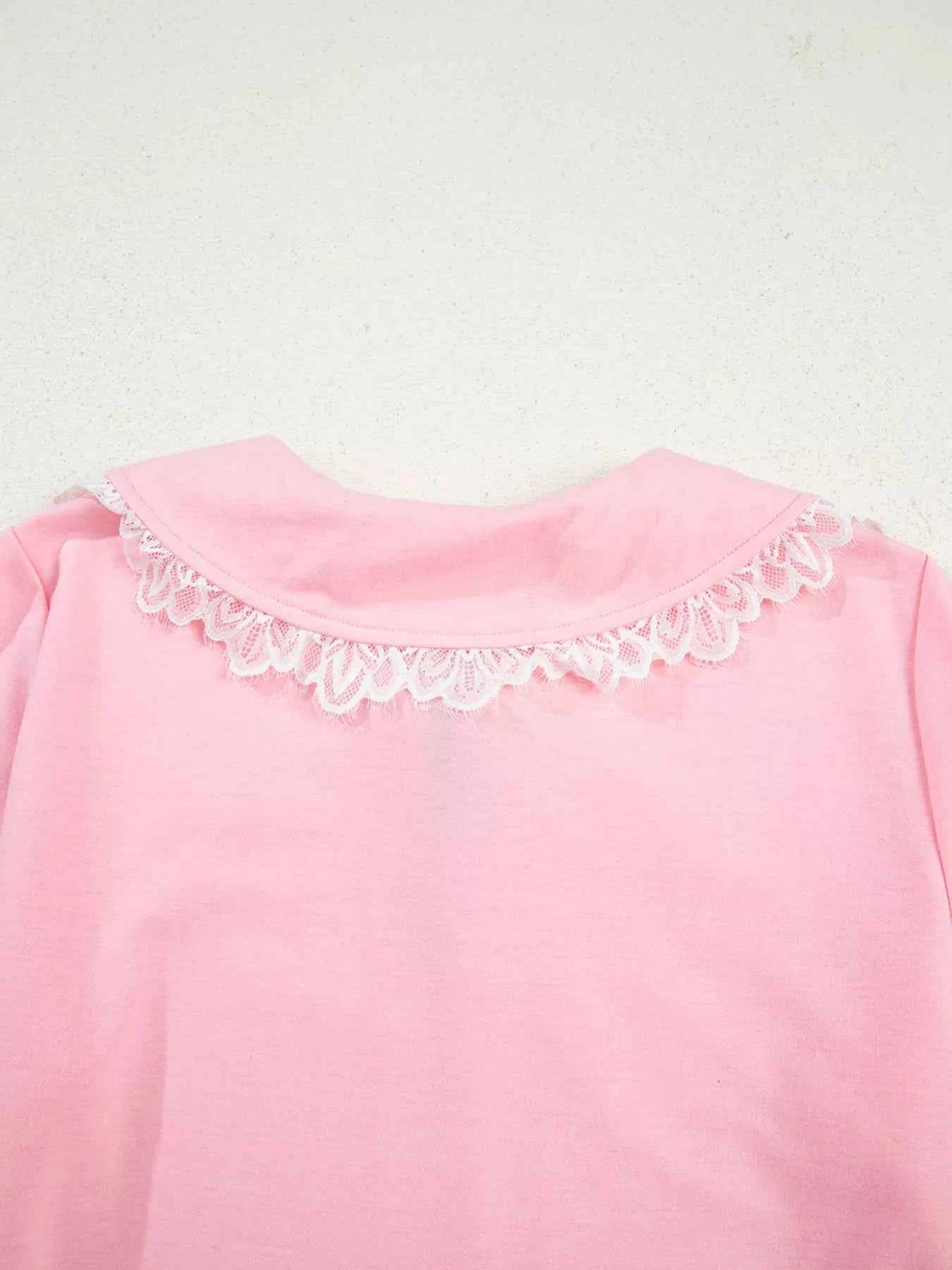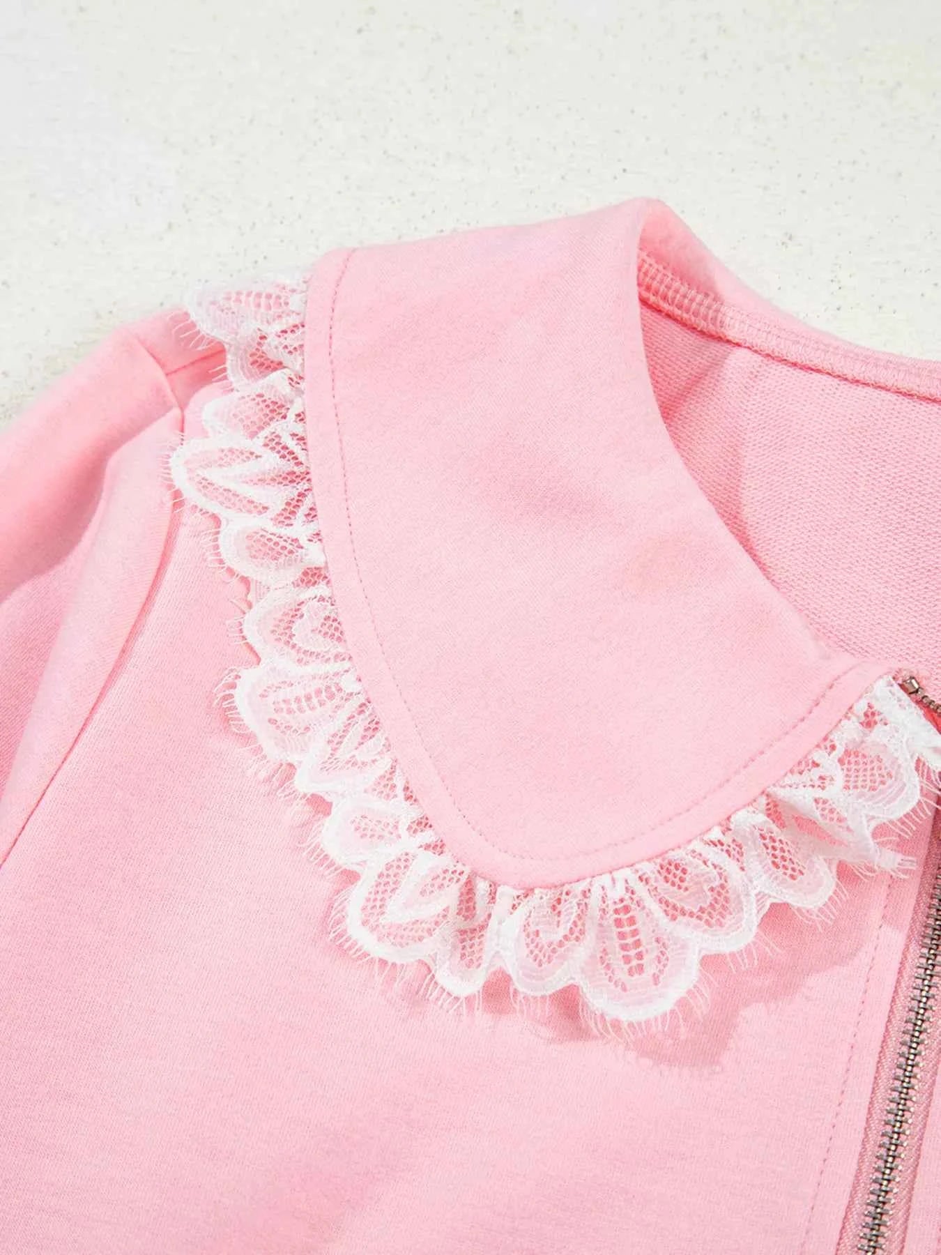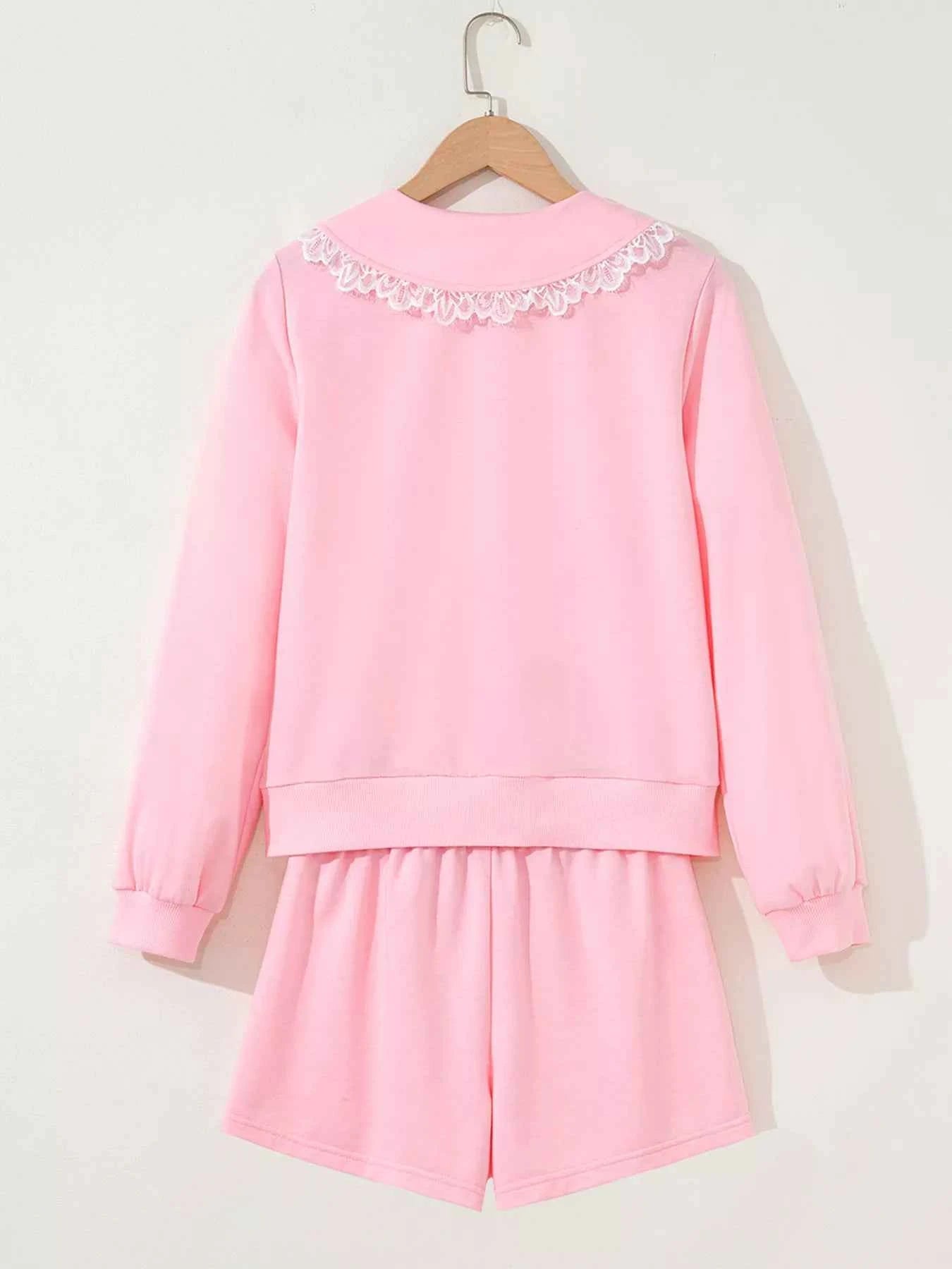 Peter Pan Lace Embellished Neck Sweatshirt and Skirt Two Piece Set