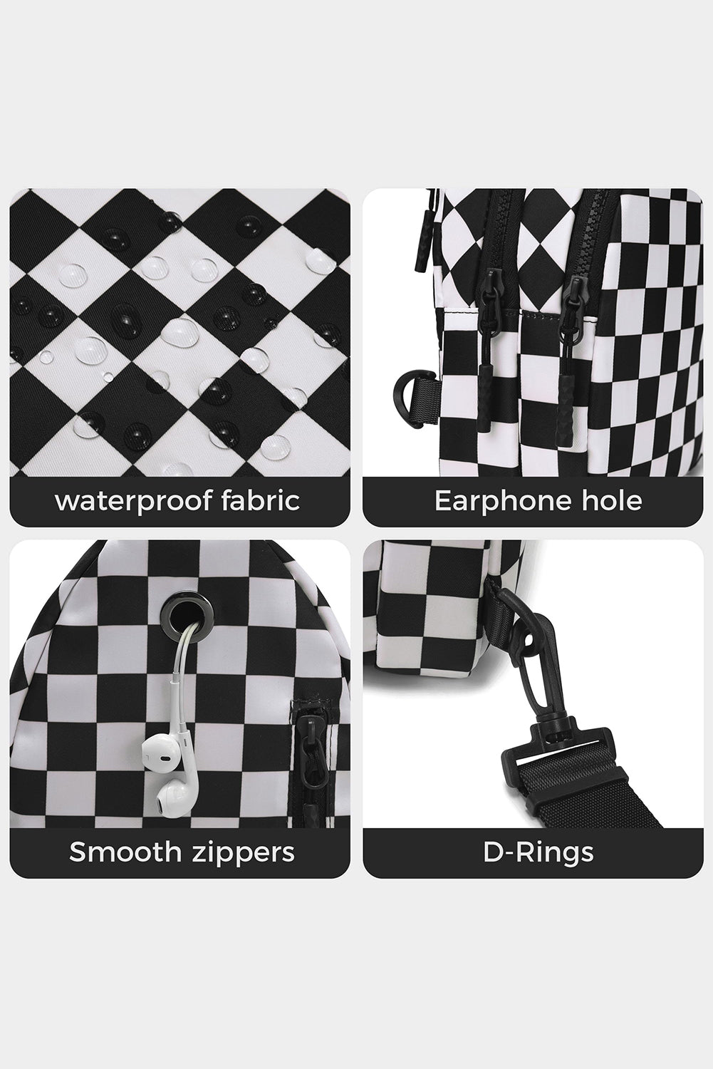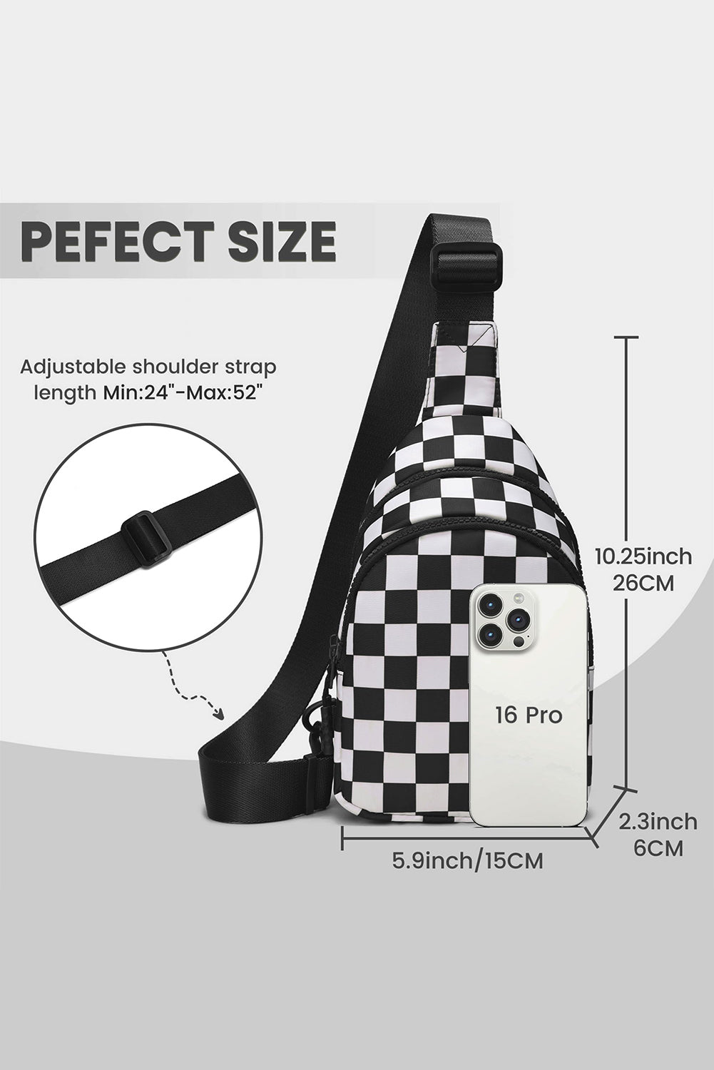 Rose Red Checkered Print Zip Front PU Crossbody Bag
