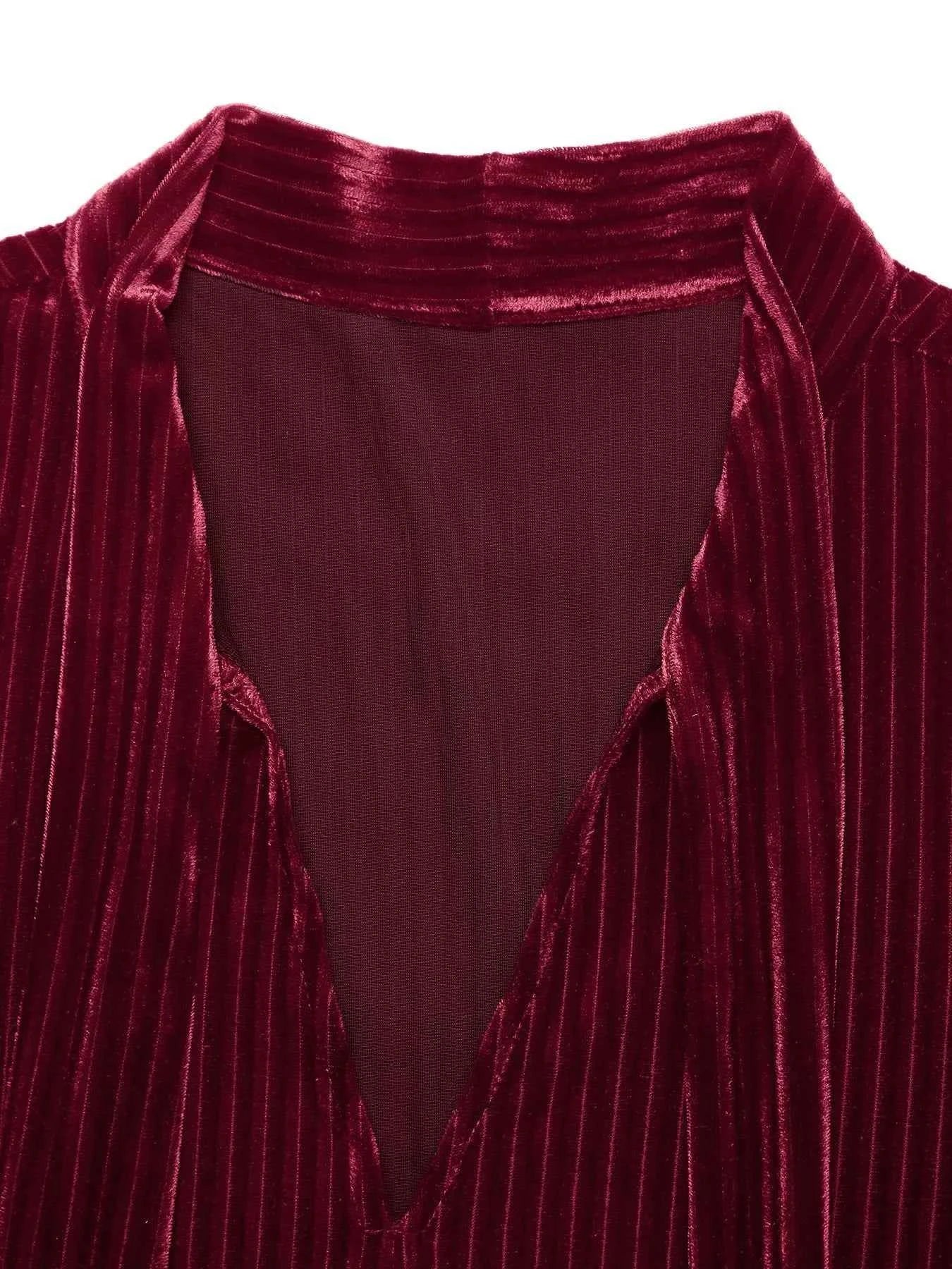 Velvet Tie Front Tiered Mini Dress